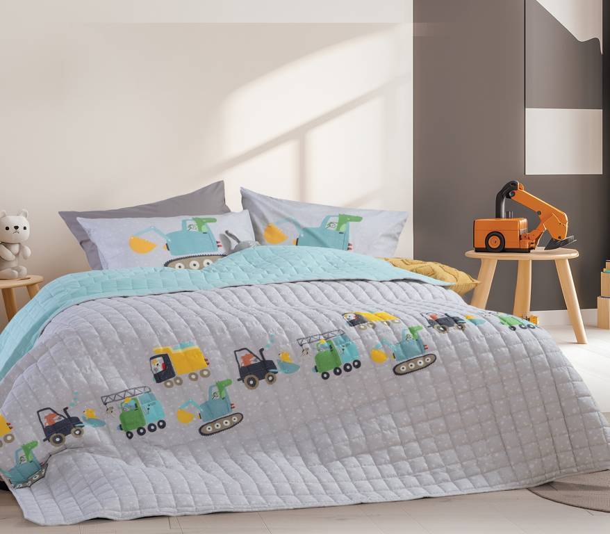 Παιδικό Κουβερλί Μονό Fun At Work 180X240 - Grey - NEF-NEF Homeware