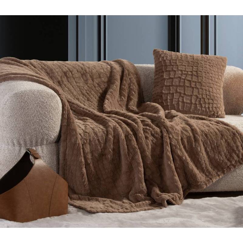 Σετ γούνινο ριχτάρι για τον τριθέσιο καναπέ και διακοσμητικό μαξιλάρι από την εταιρεία Guy Laroche. Είναι κατασκευασμένα από 100% polyester οικολογική γούνα που προσφέρει πολύ απαλή υφή. Έχουν ανάγλυφο σχέδιο animal print και απαλό γκρι χρώμα. Αποτελούν ένα υπέροχο σετ για το σαλόνι, καθώς διακοσμούν τον καναπέ δίνοντας ένα ζεστό χειμωνιάτικο ύφος.